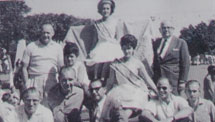 Carro alegórico com os proprietários da Cancella Veículos, Gildo e José Manuel e americanos da cúpula da Ford. |